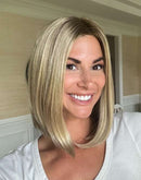 Clementine by Jon Renau is the hairdo you need if you're seeking that classic bob haircut. This shoulder-length synthetic hairstyle has blunt cut ends that are cut in a clean, straight line for an edgy look. The long side layers help balance out your facial silhouette for a flattering look. The SmartLace front gives you a natural-looking hairline, and the monofilament top offers multidirectional parting.